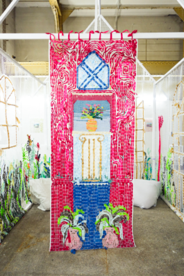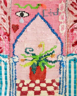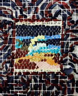 Émancipée du savoir-faire ouvrier, Delphine Dénéréaz tisse pour faire voyager un art longtemps considéré comme mineur. Le tissage, lui, en entrelacs de bandes de tissus désuets, tire de profondes racines dans les terres françaises du Moyen-âge sous le nom de lirette. Son usage était attribué au milieu paysan qui confectionnait ainsi tapis et couvertures de peu de moyens. Par substitution, son usage protecteur cède sous nos yeux à la contemplation, sous nos âmes à l’abandon.