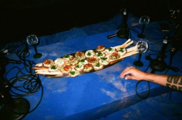 Au centre de la table, boissons et aliments nourrissent la conversation qui se créent entre