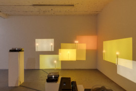 Pour révéler l’âme du lieu, Marion Flament fait de la lumière son interprète. Malgré son caractère éphémère, elle fige les instants, instables. Un feu, un reflet, un rayon de soleil l’après-midi. Même dans le noir assoupi se réveille la couleur du jour. Depuis les variations de décor, la lumière entre en scène dans son état symbolique pour annoncer, bénir, accueillir, parfois simplement comme un sentiment. Ainsi, chaque œuvre porte en elle un événement et son atmosphère, par un procédé de fabrication naturel ou artificiel qui laisse l’empreinte du temps. Qui sait si les rayons sont de nature humaine ou divine, qui sait si le verre à été soufflé au passé ou au présent. Sous artifices, les flammes, elles, vécurent longtemps.